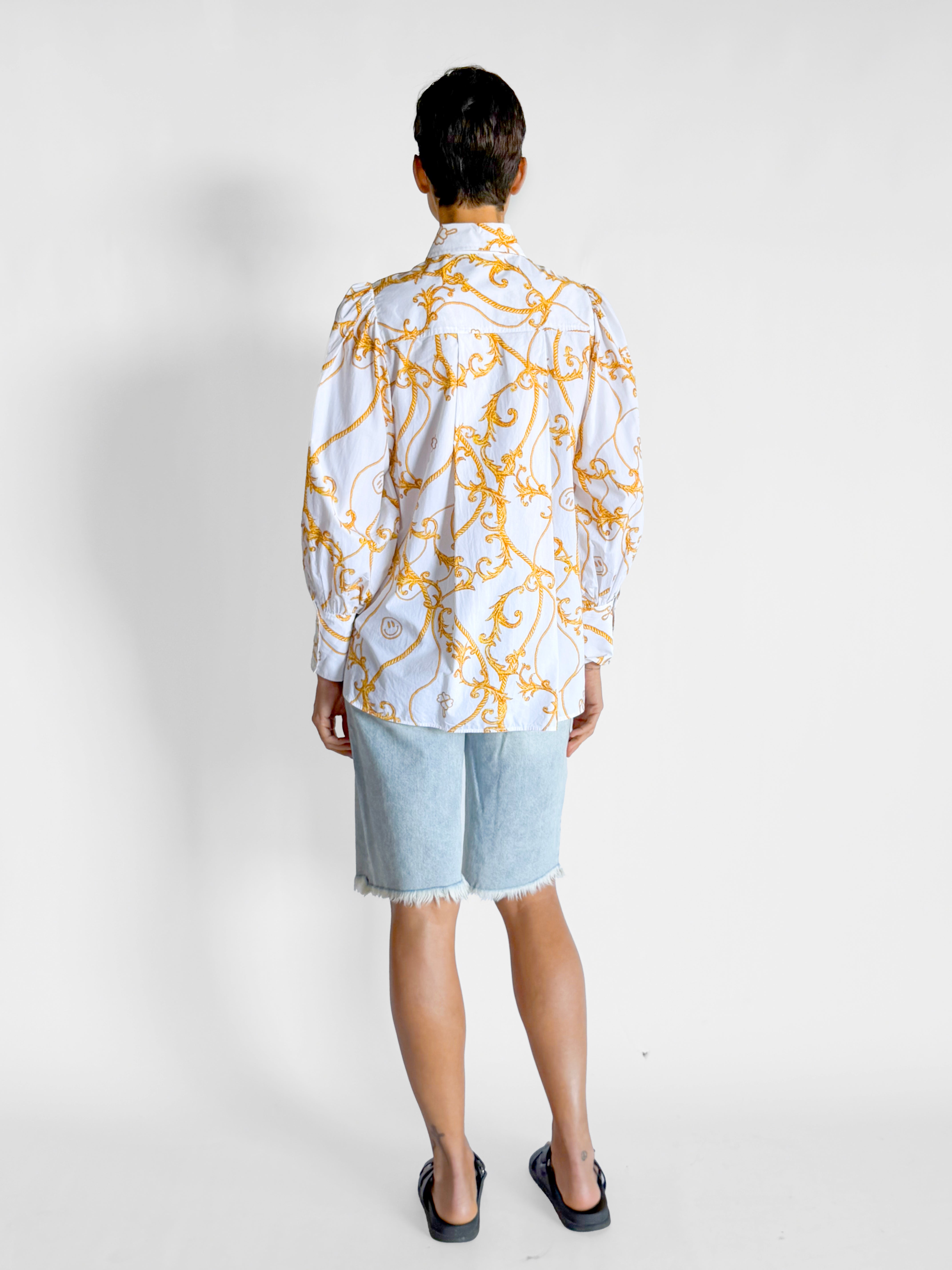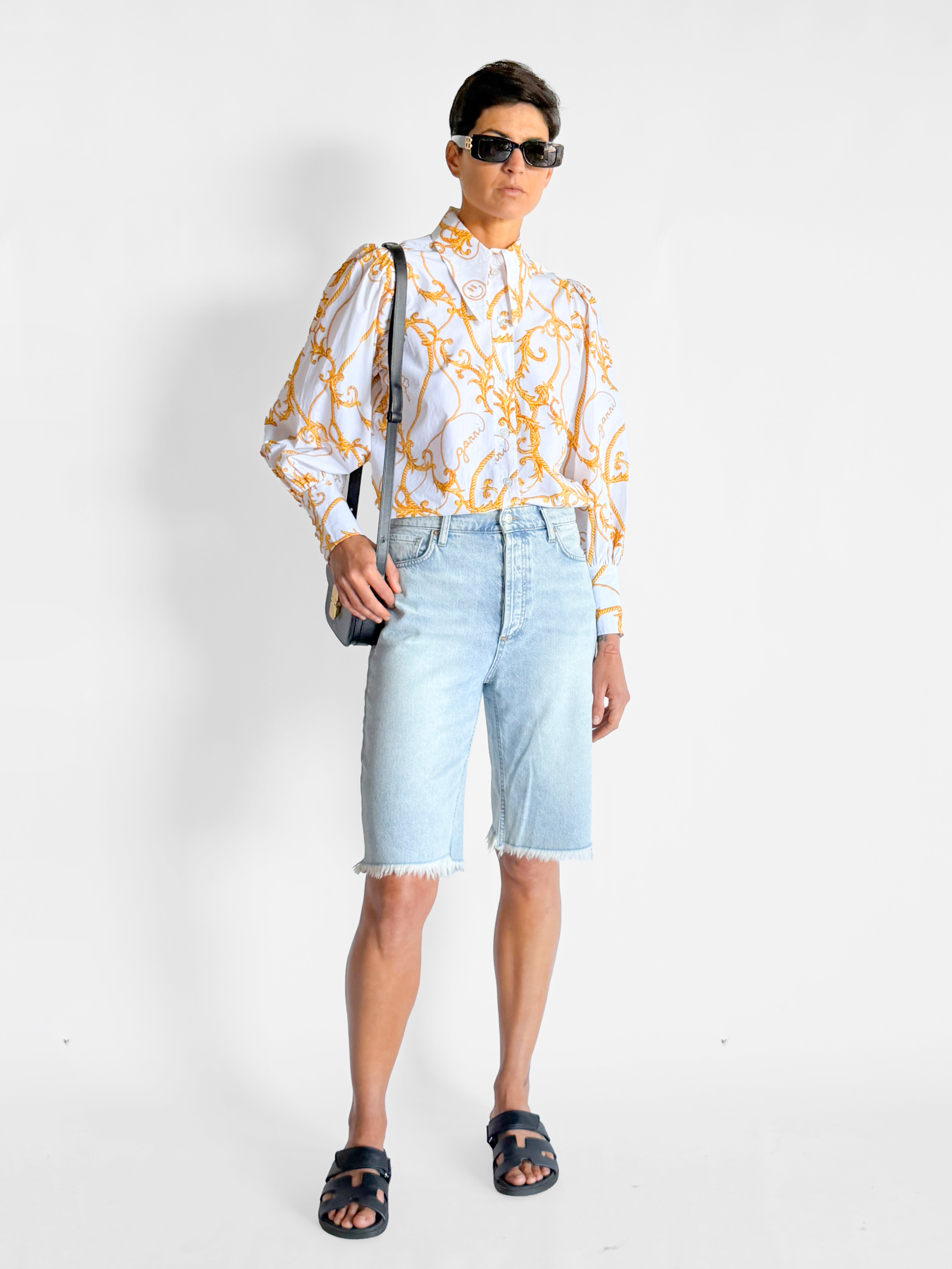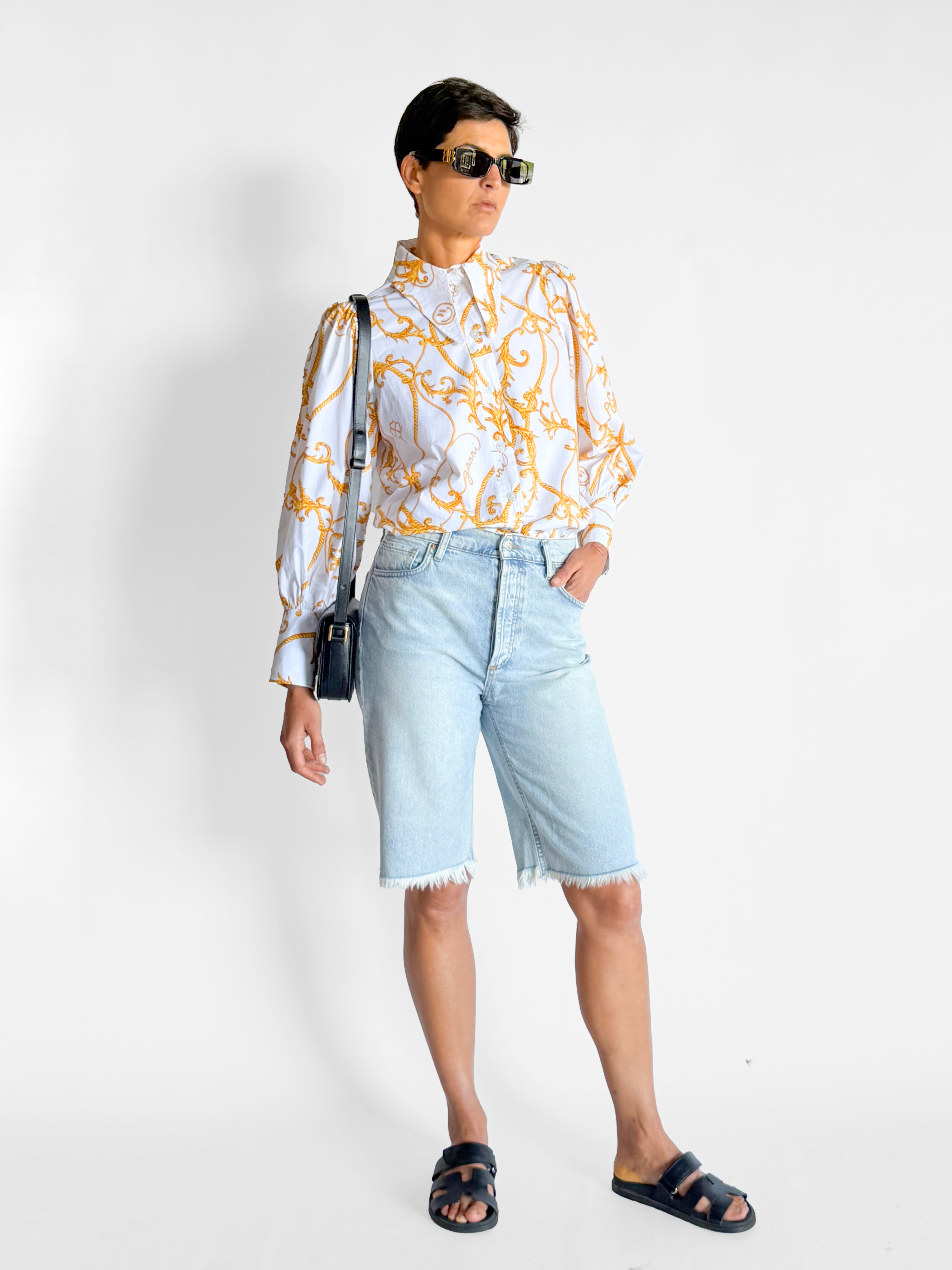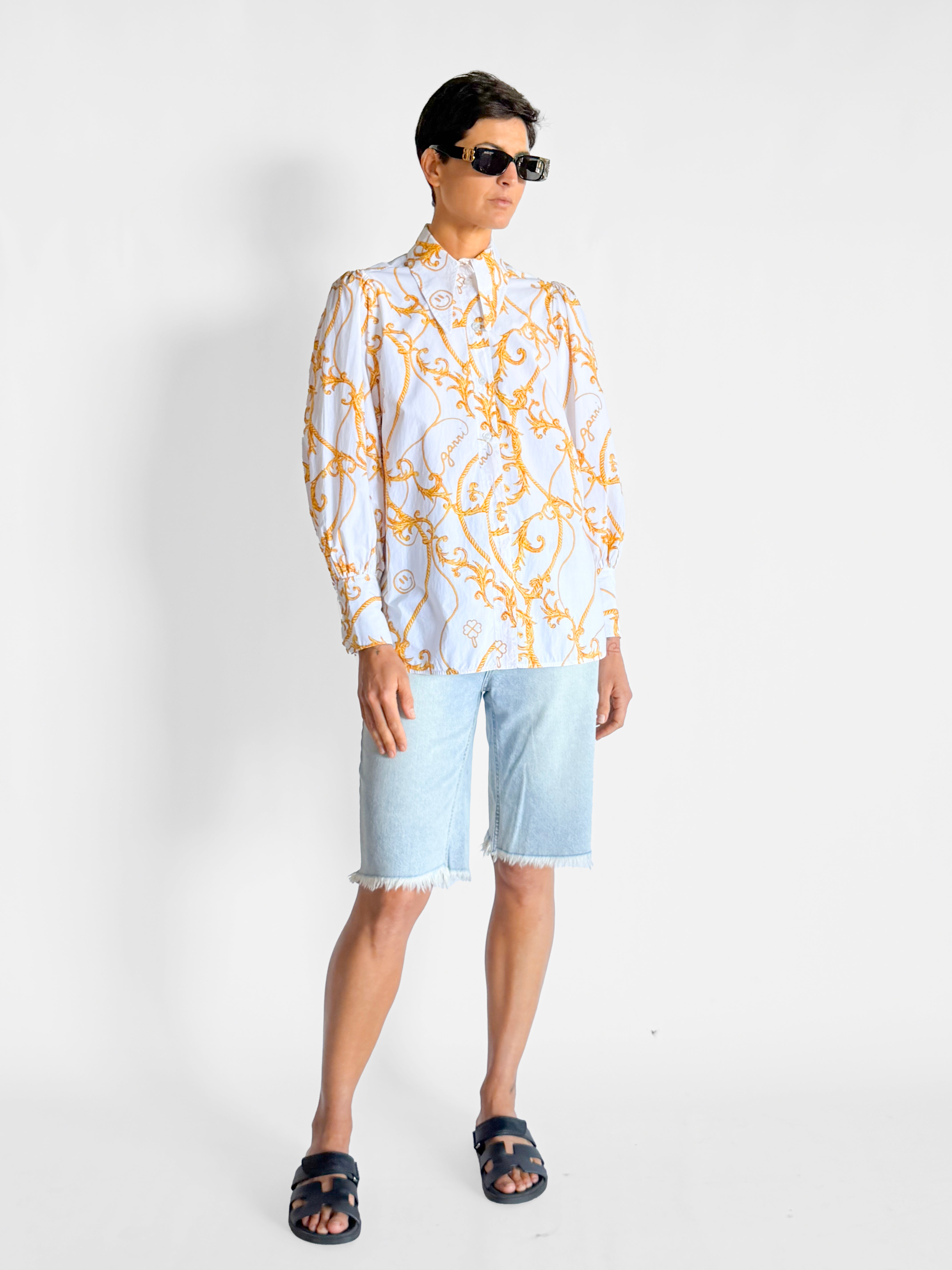 • Ganni Long Collar Puff Sleeve Shirt