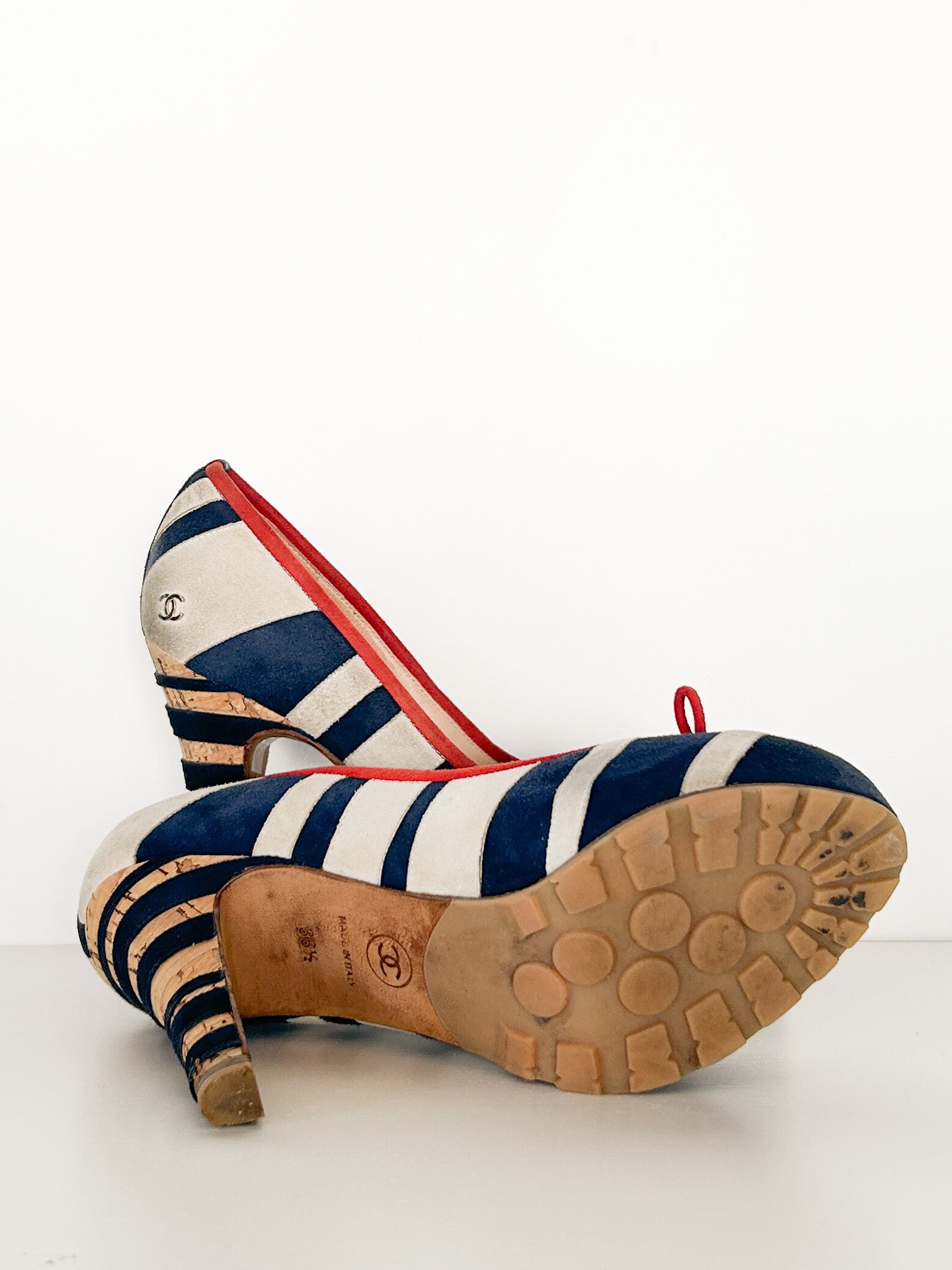 • Chanel Vintage Stripe Cork Pump