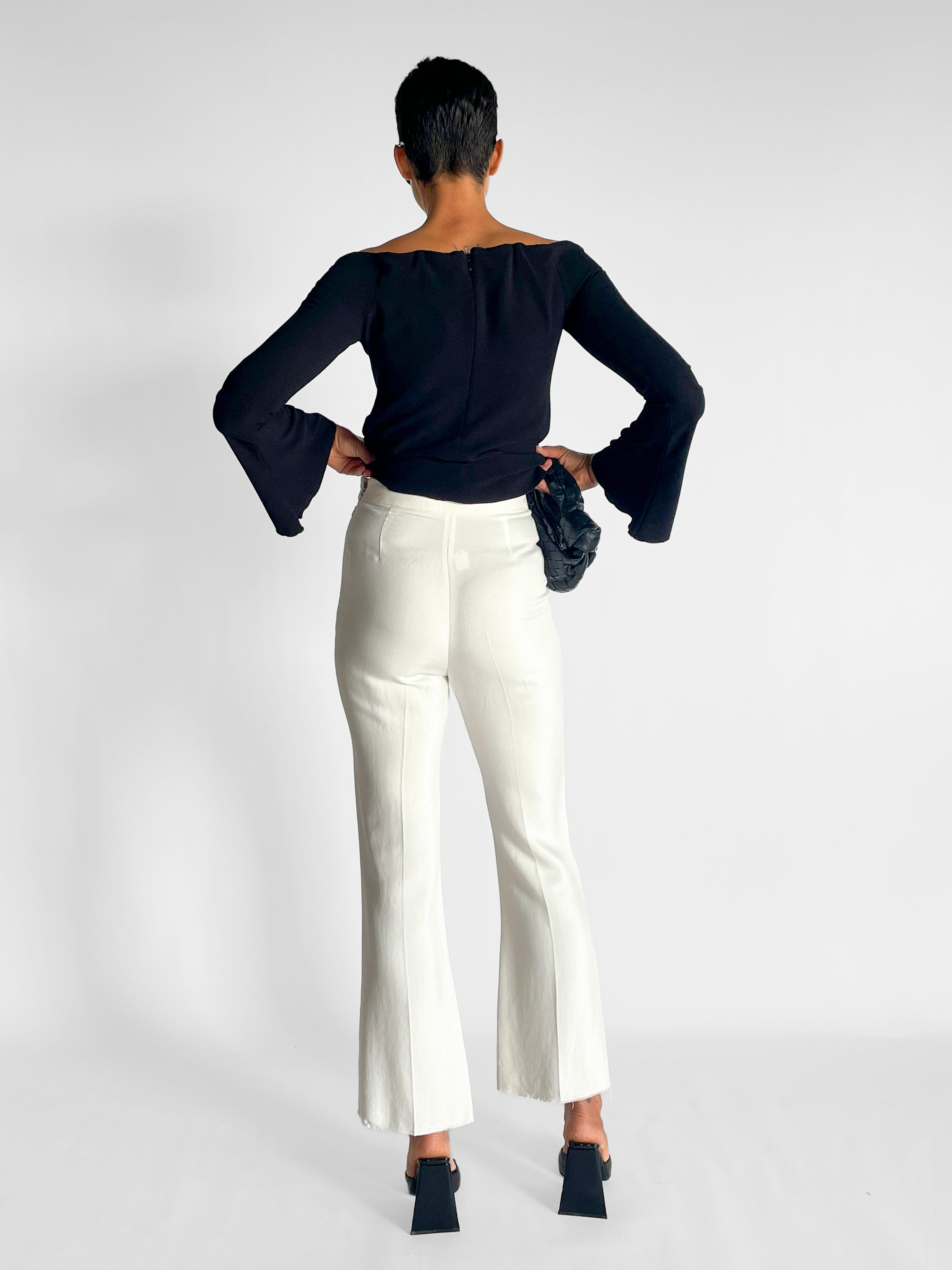 • Pants have a raw hem