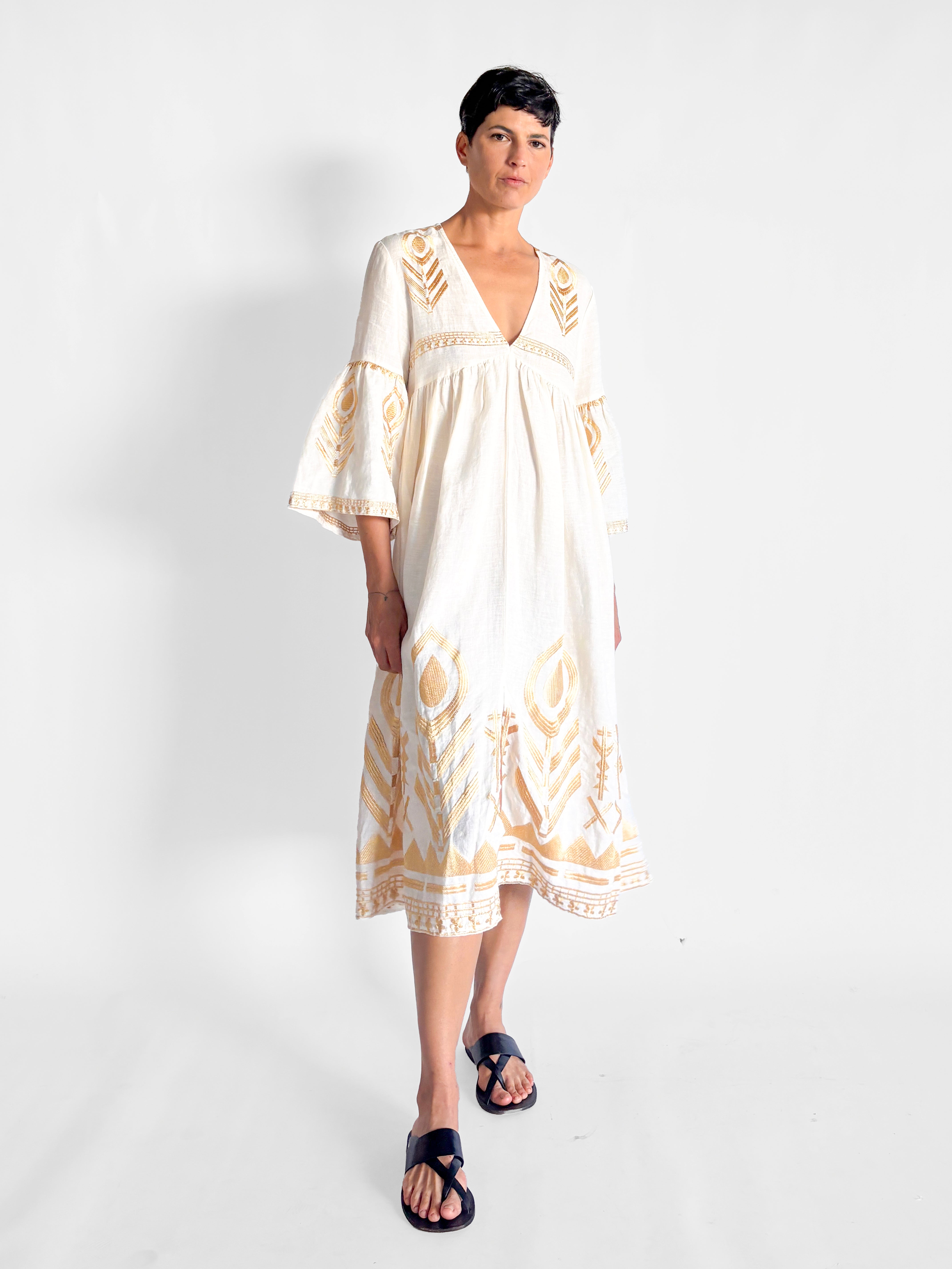 Gold Embroidered Midi Dress