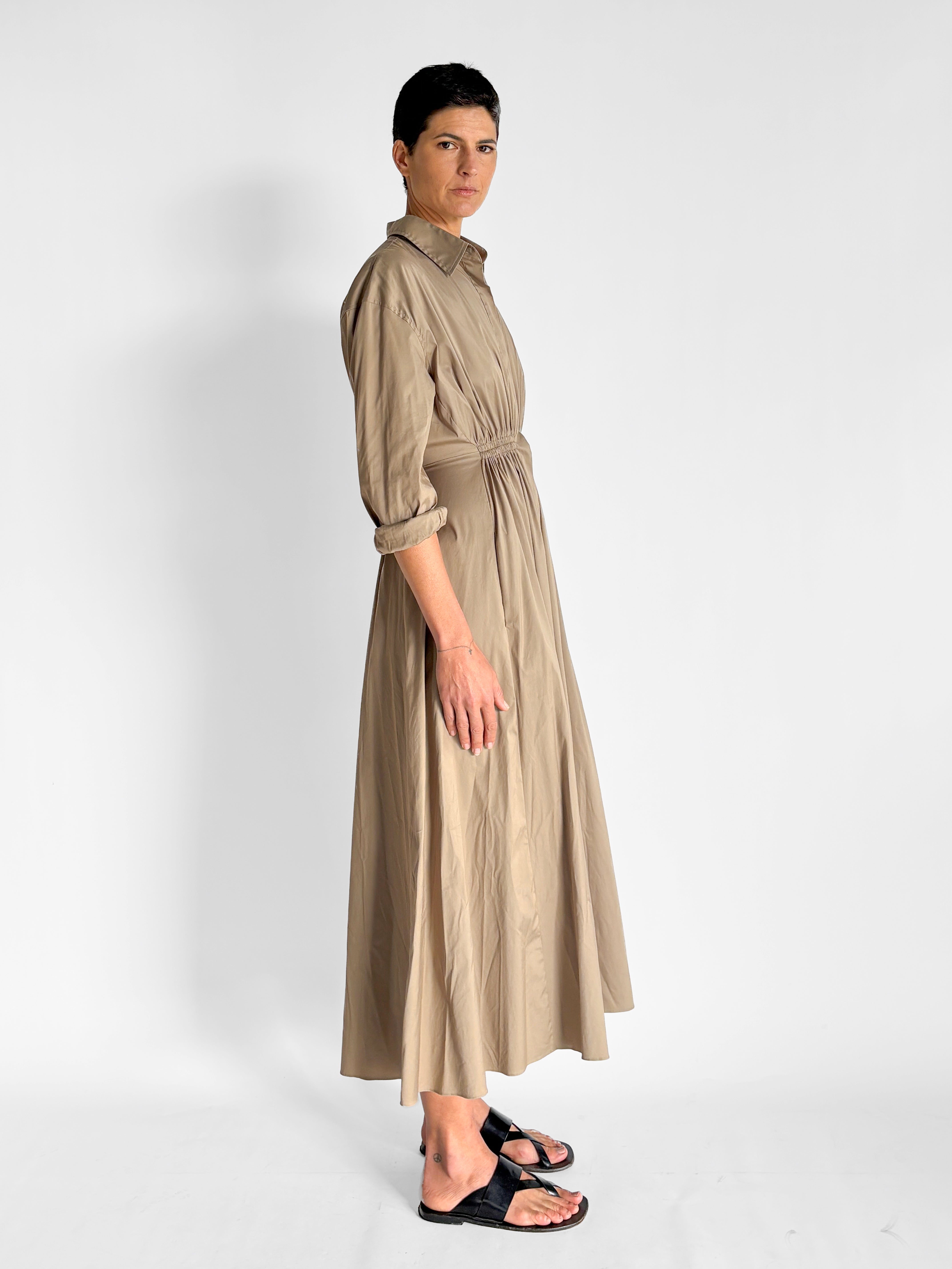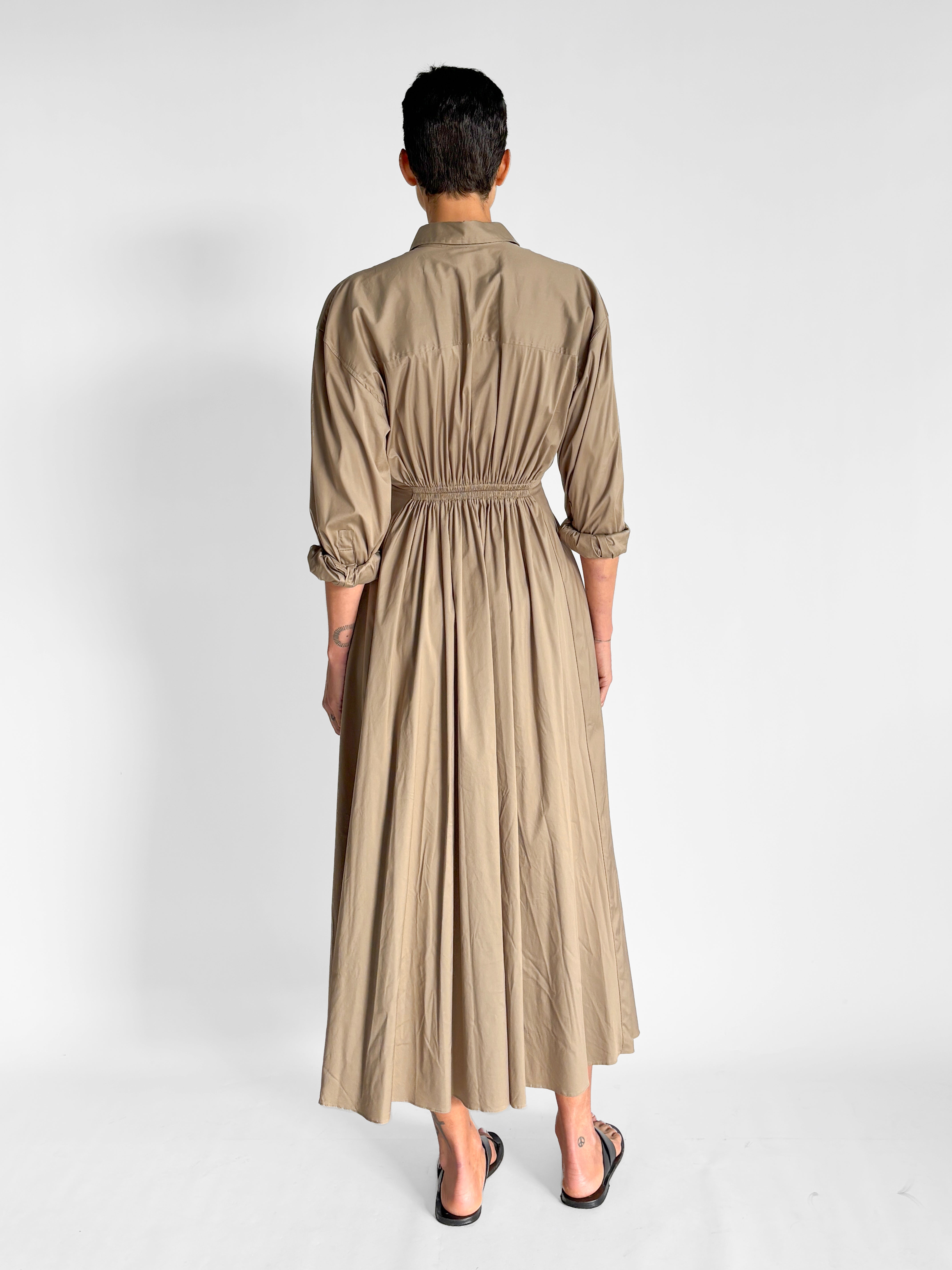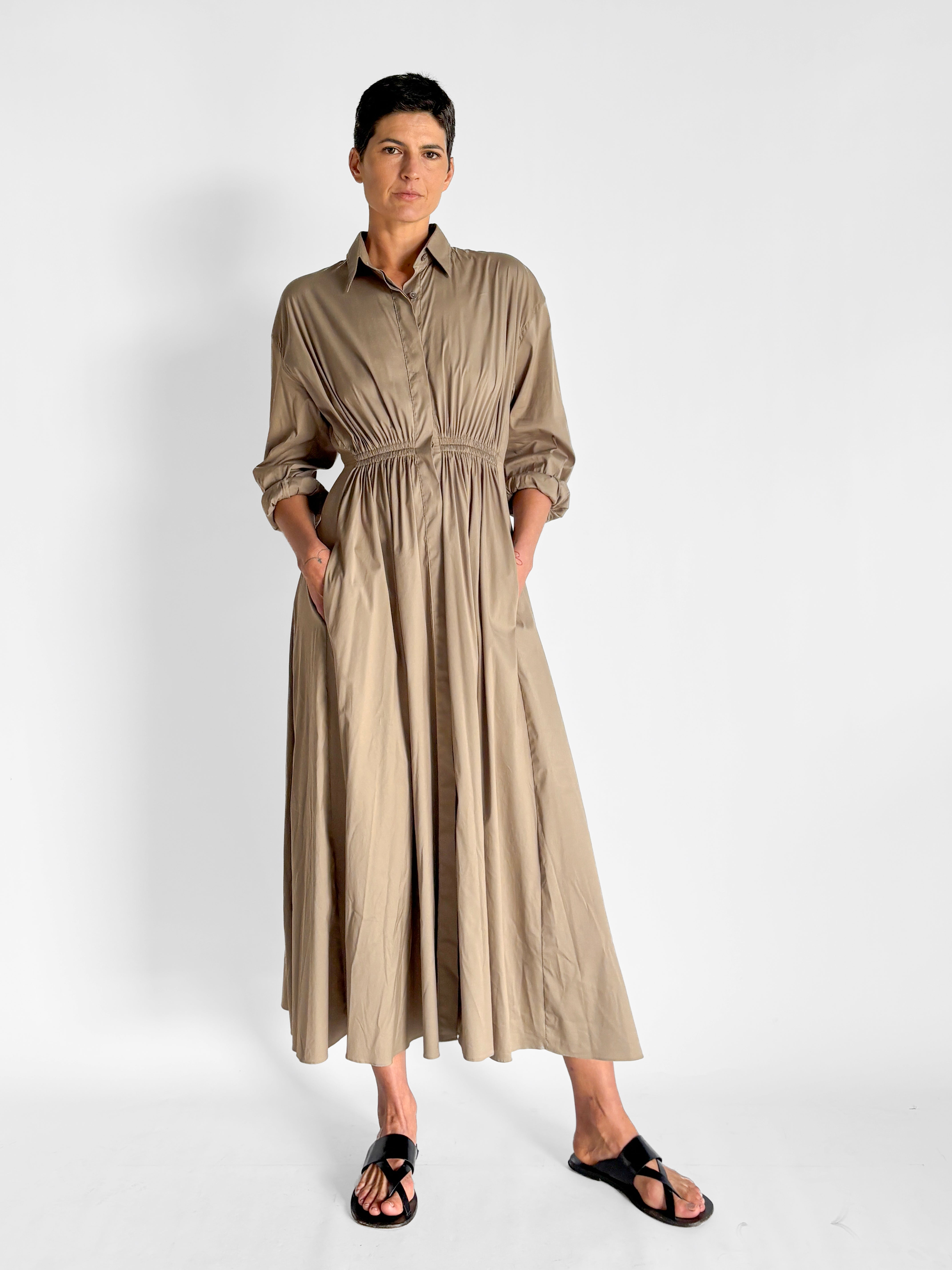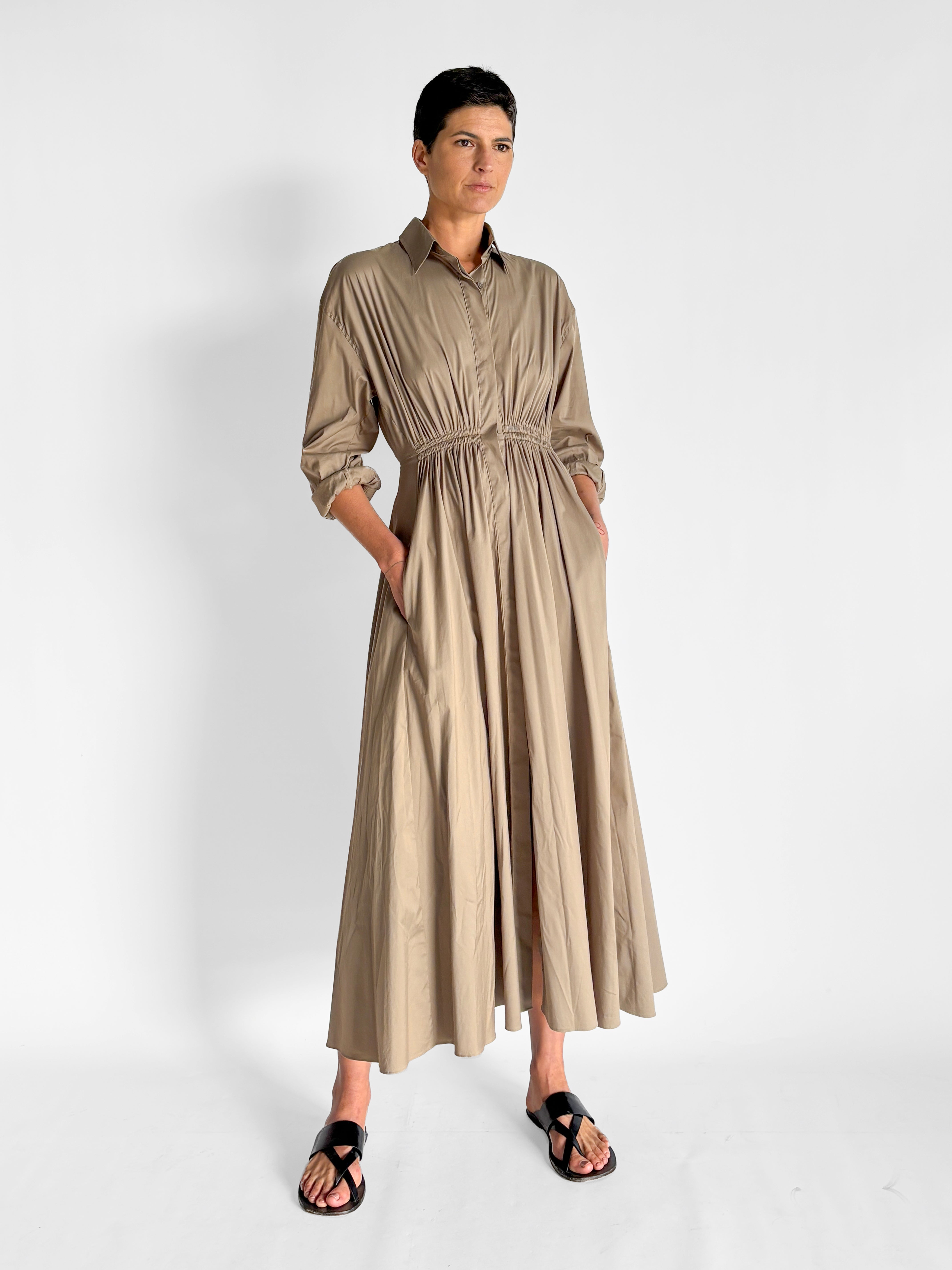Gathered Button Front Maxi Dress