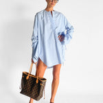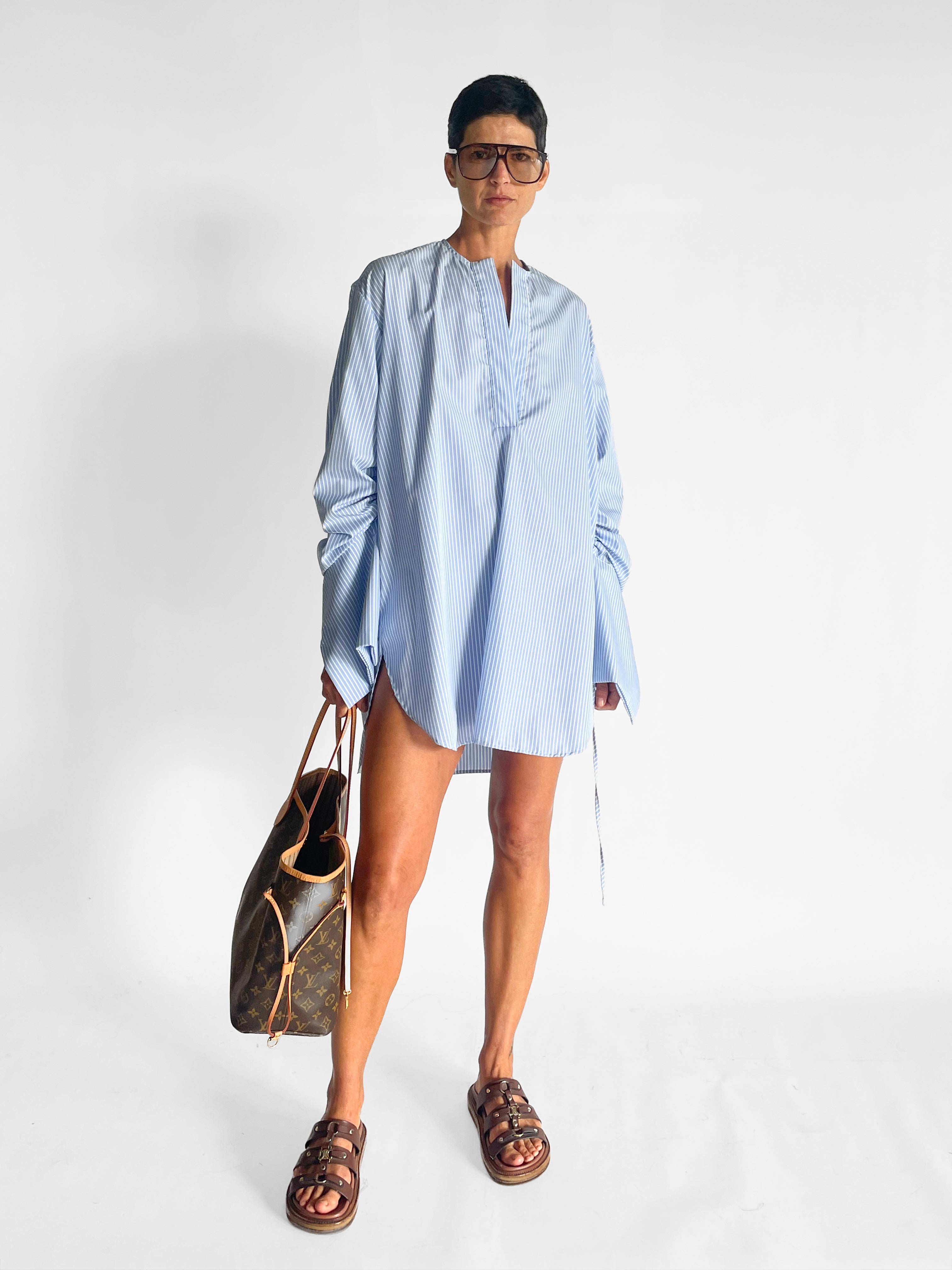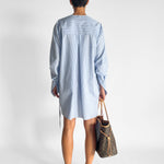 Striped Collarless Shirt Dress