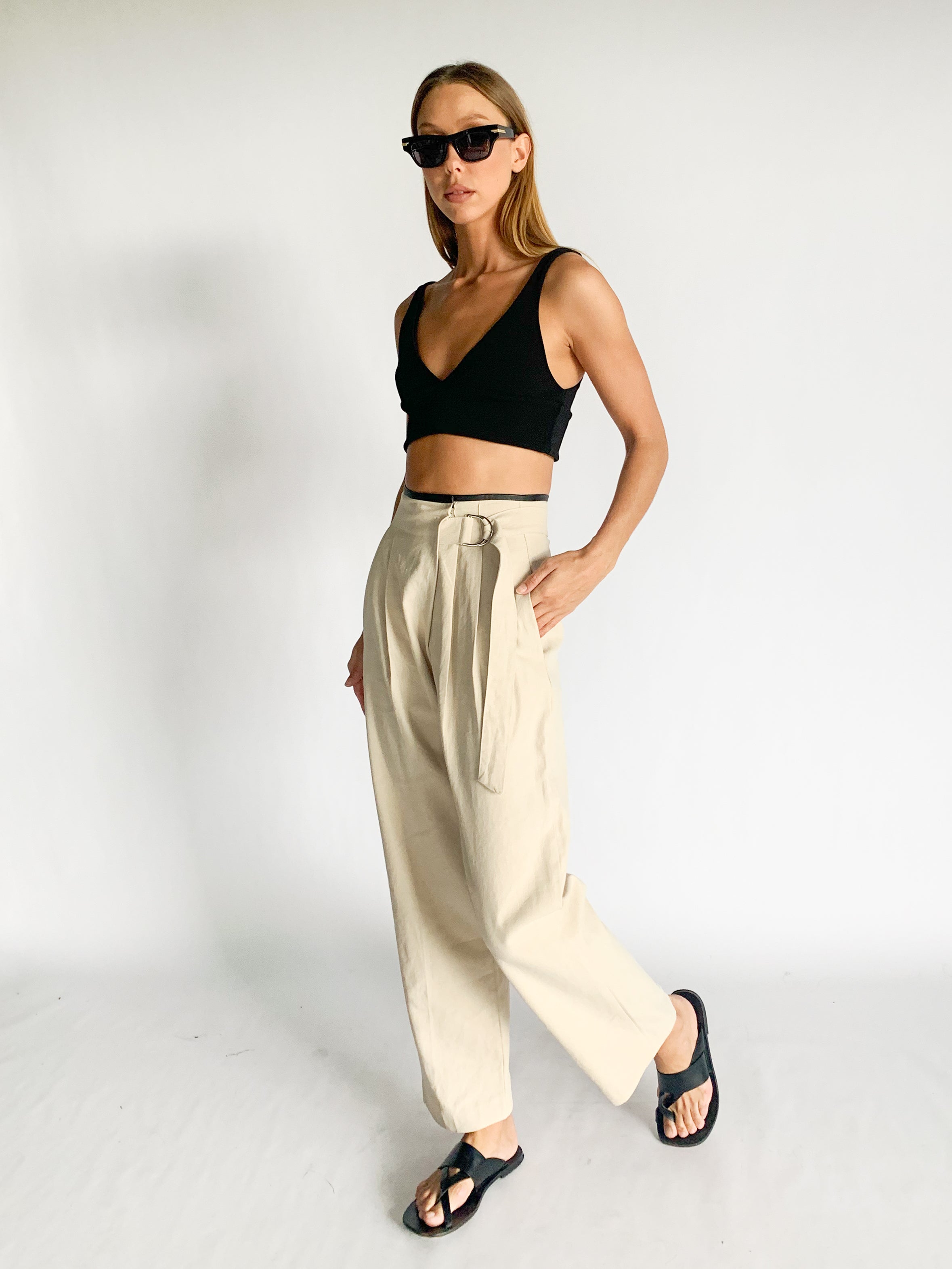 Linen Cinch Waist Pants