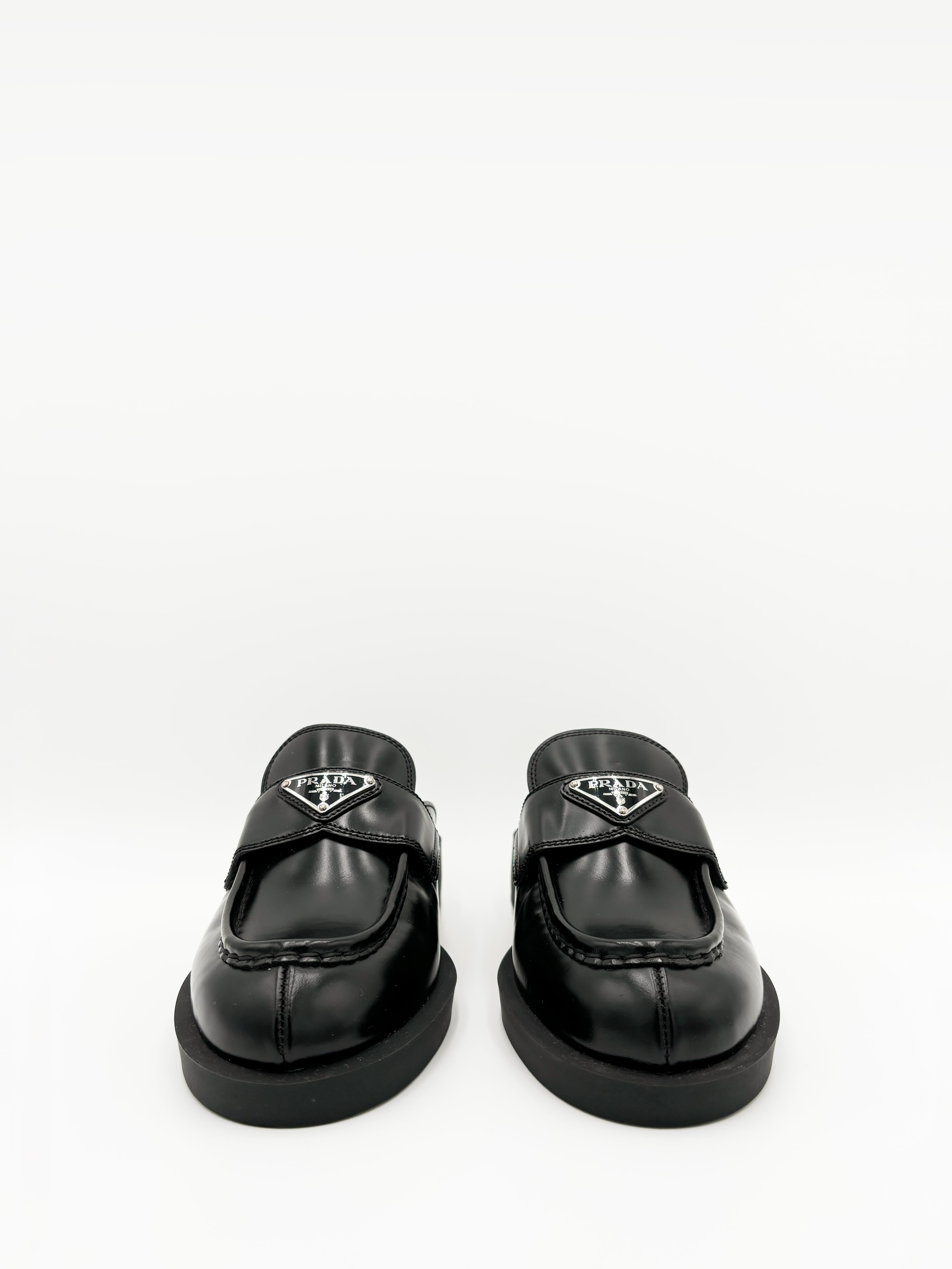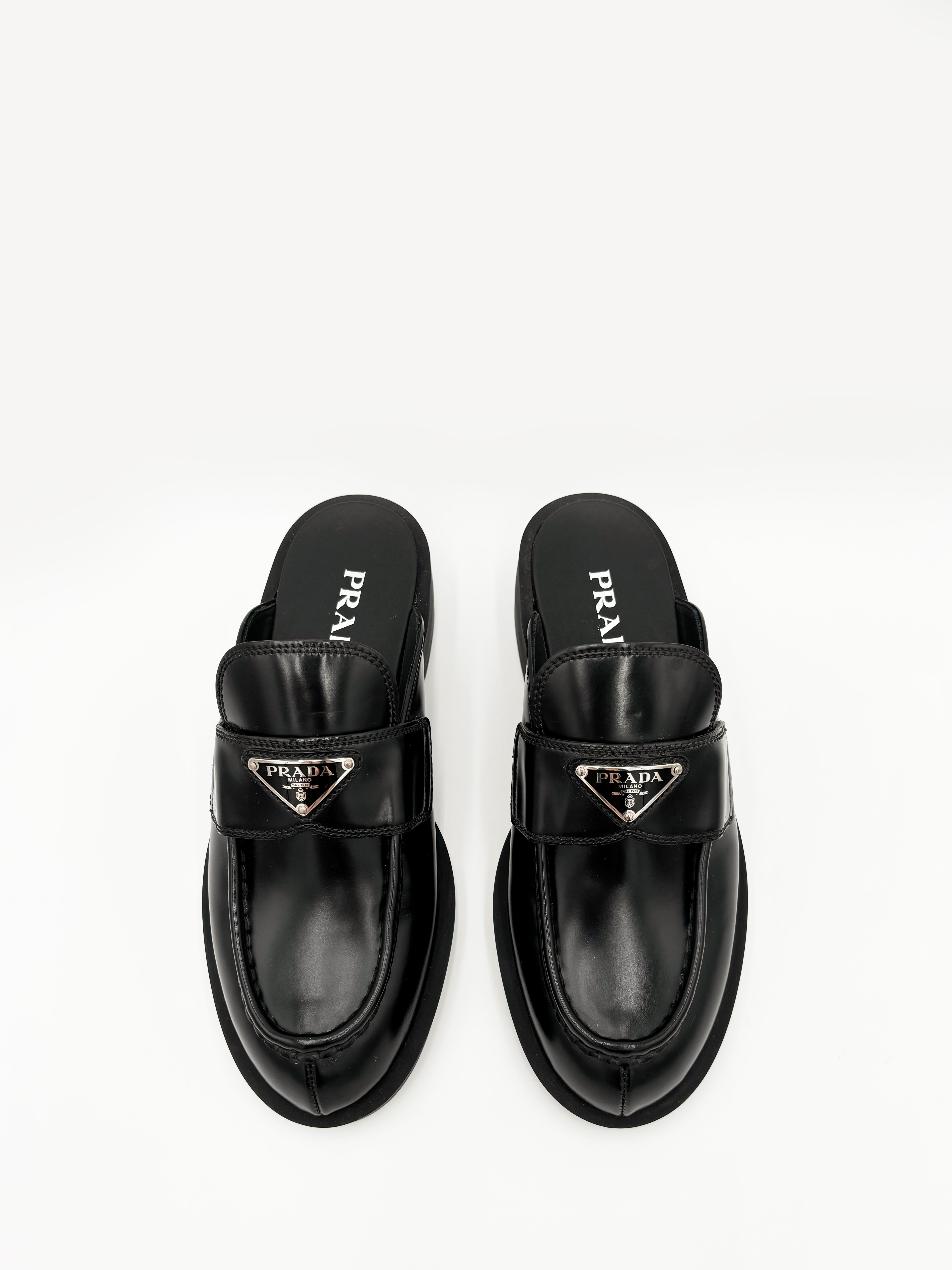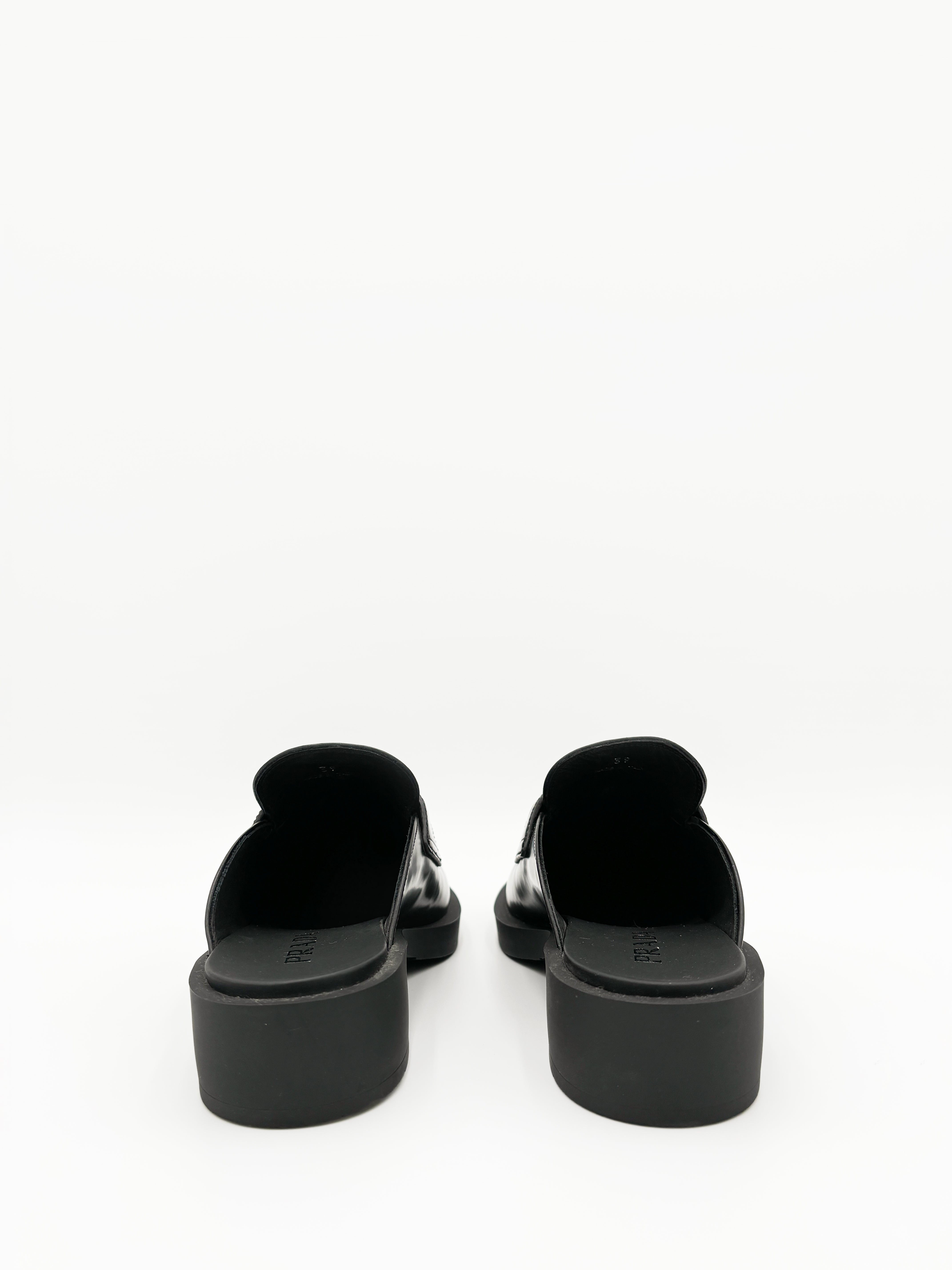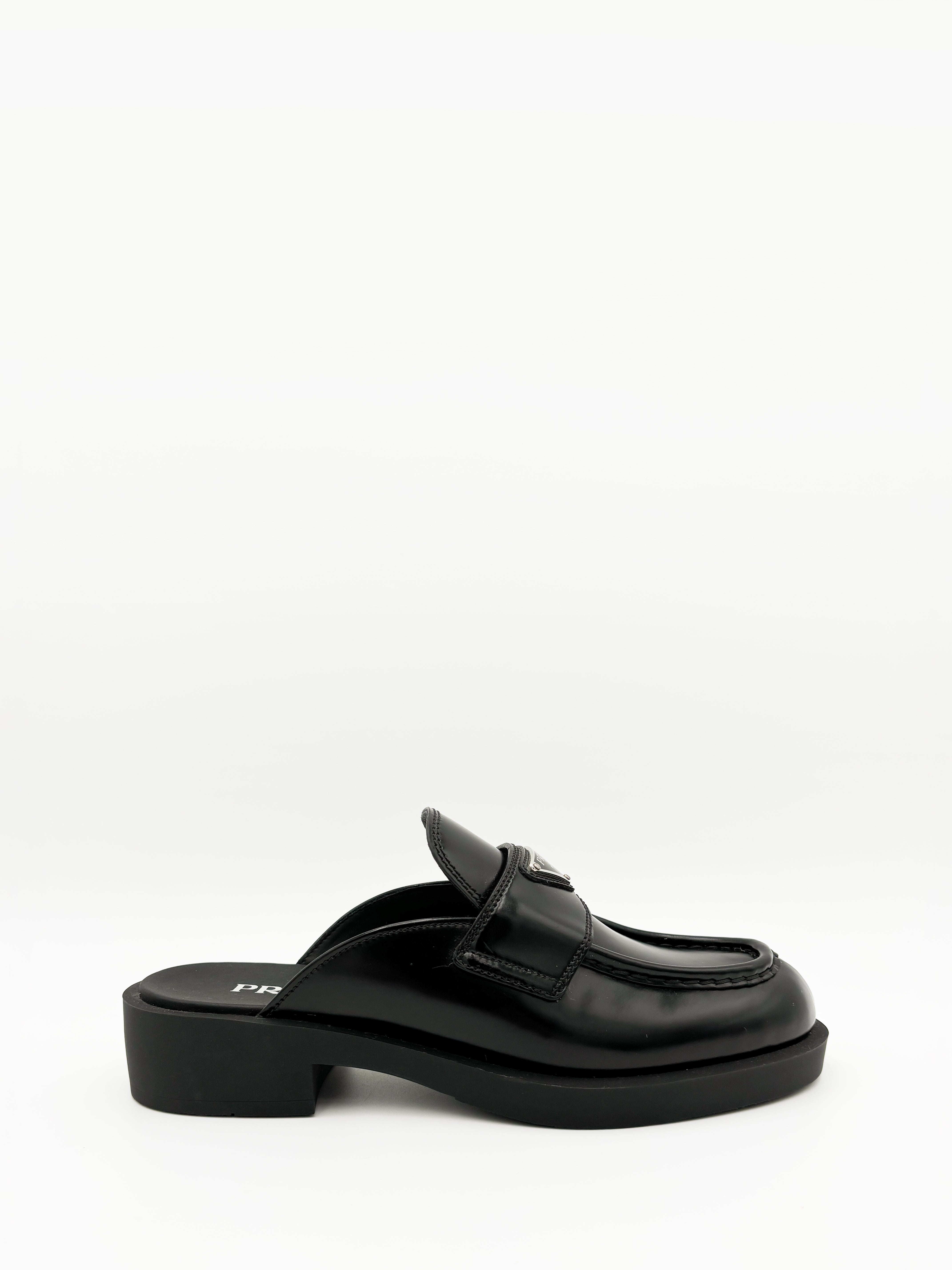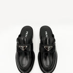 • Prada Chocolate Brushed Leather Mules