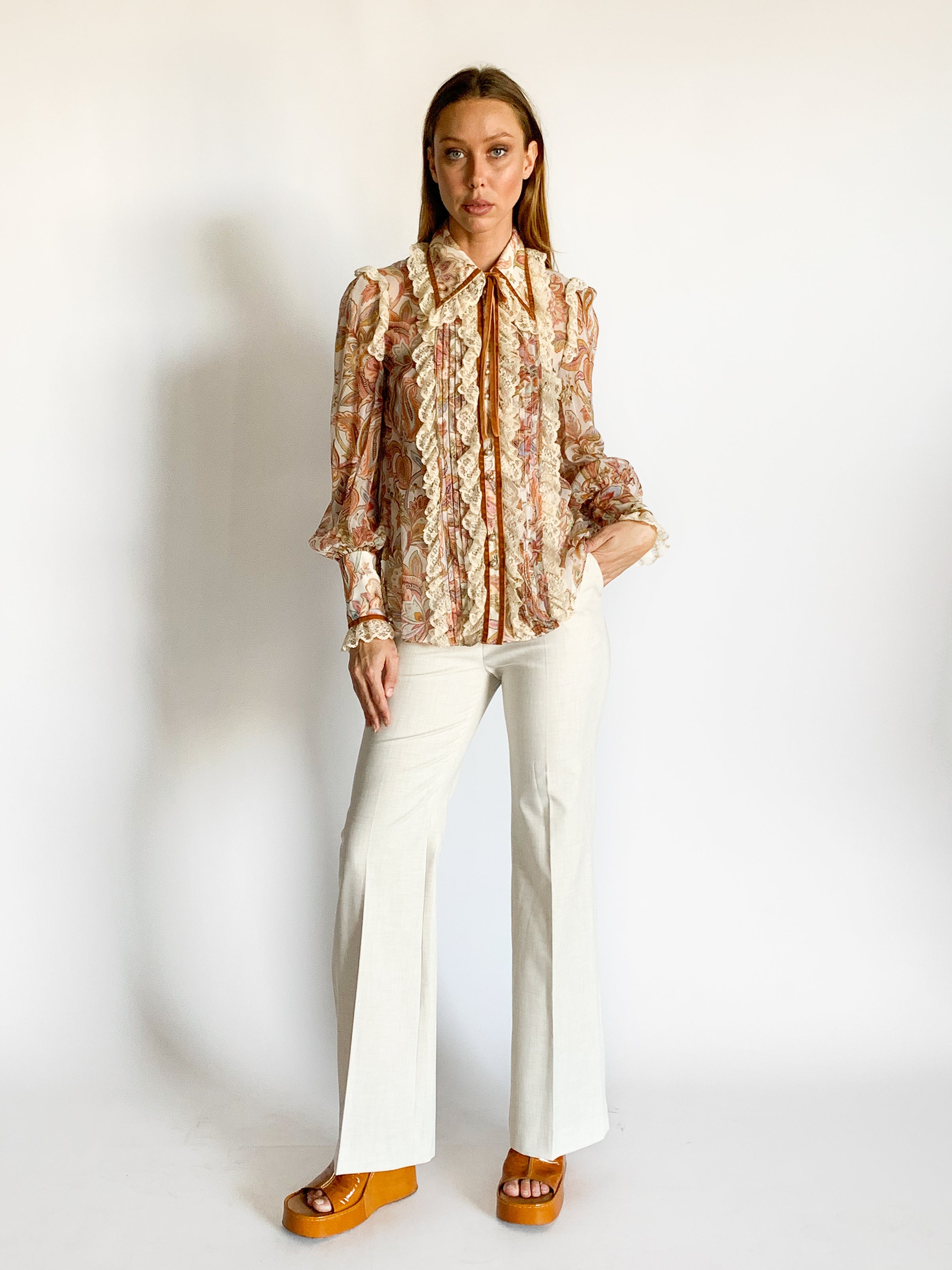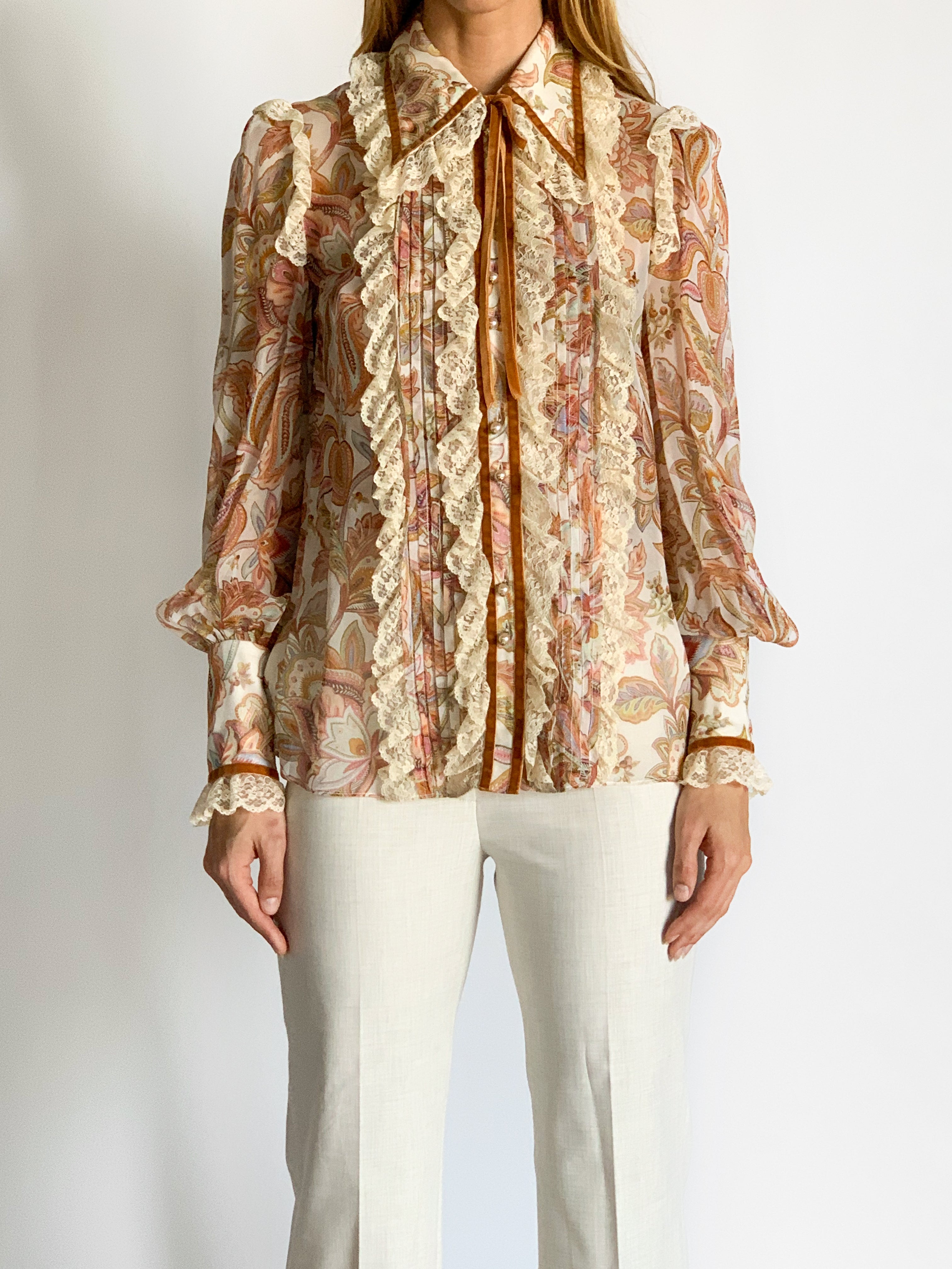 • Zimmermann Lucky Lace Collar Silk Blouse