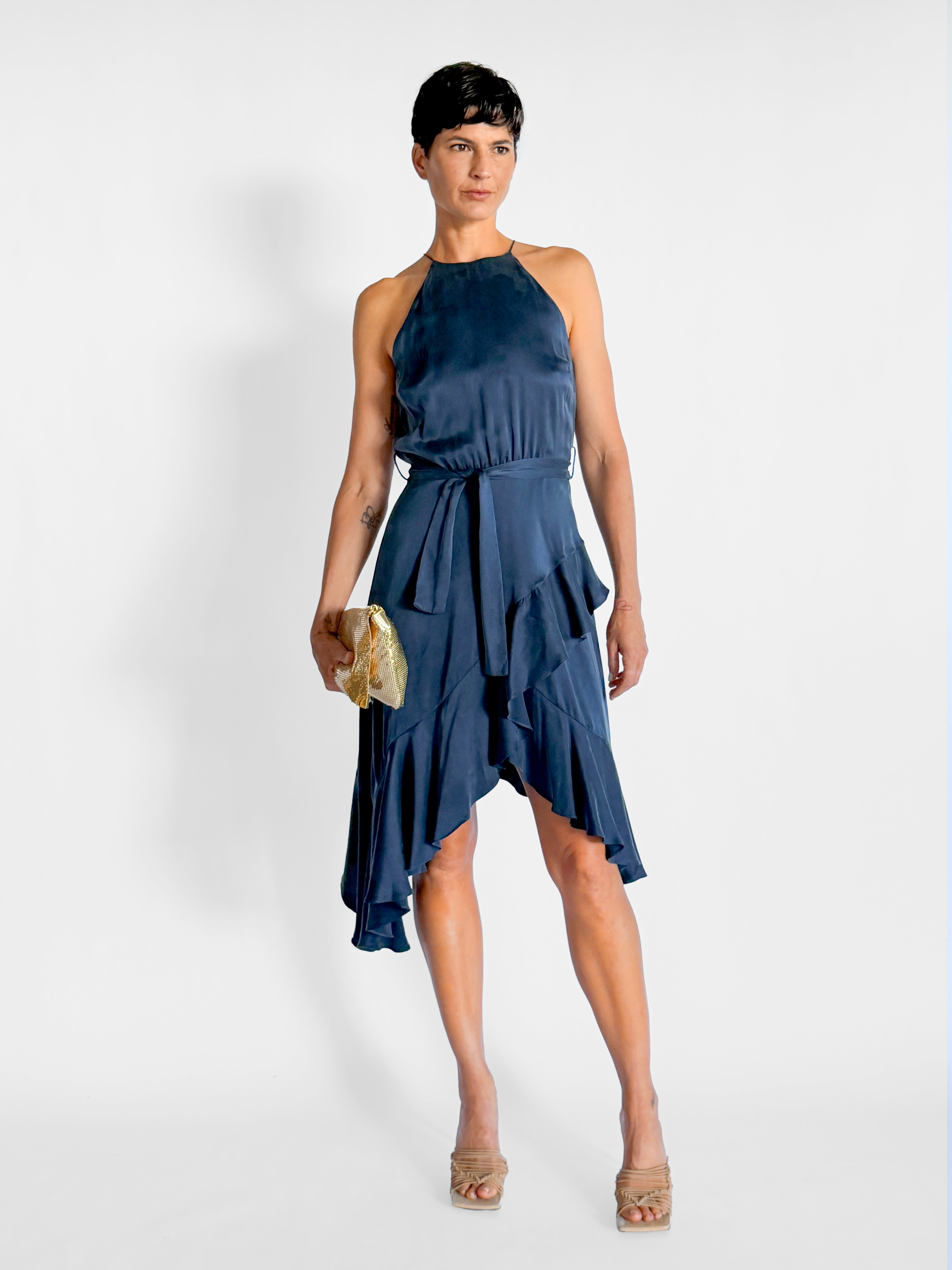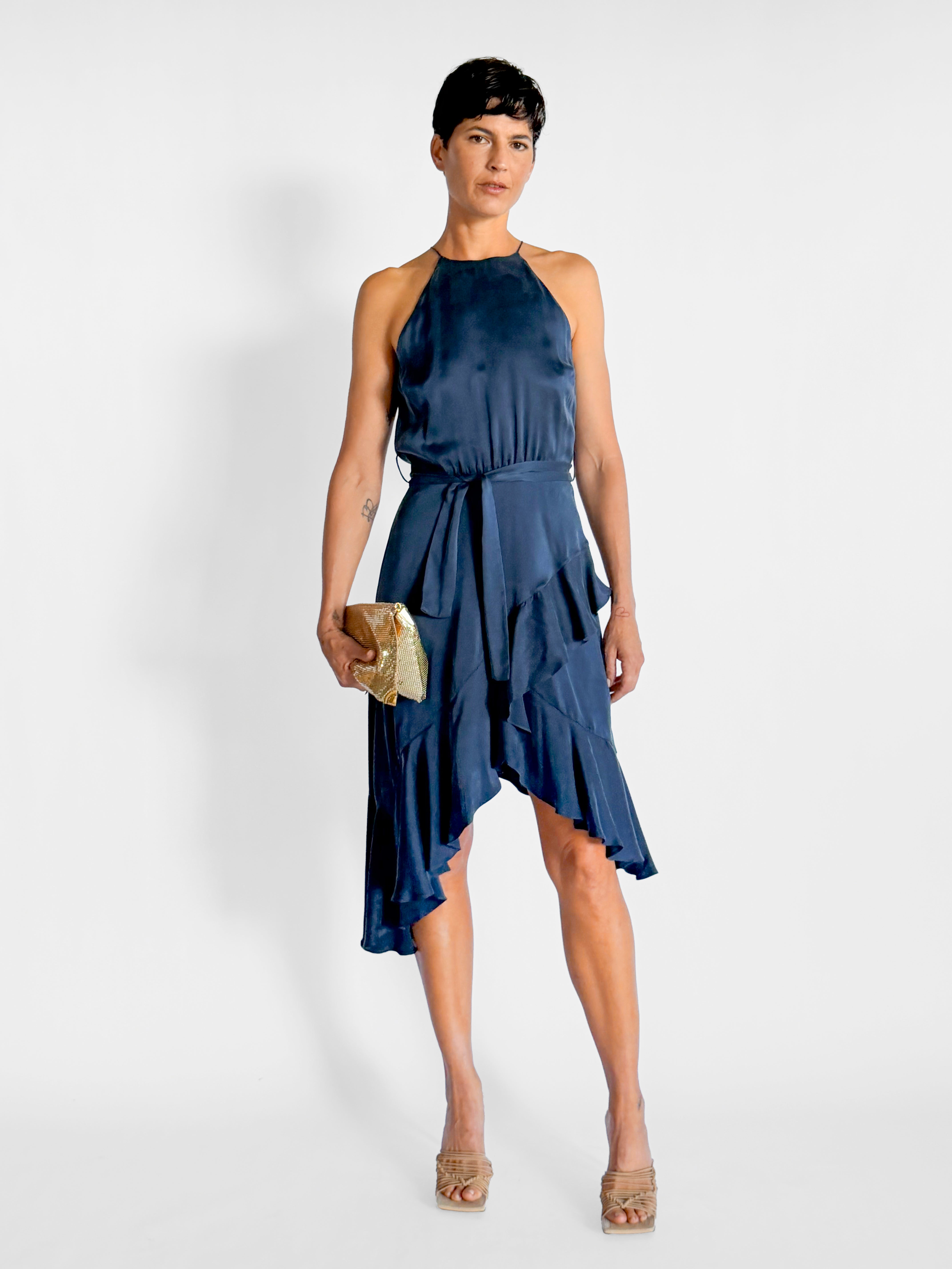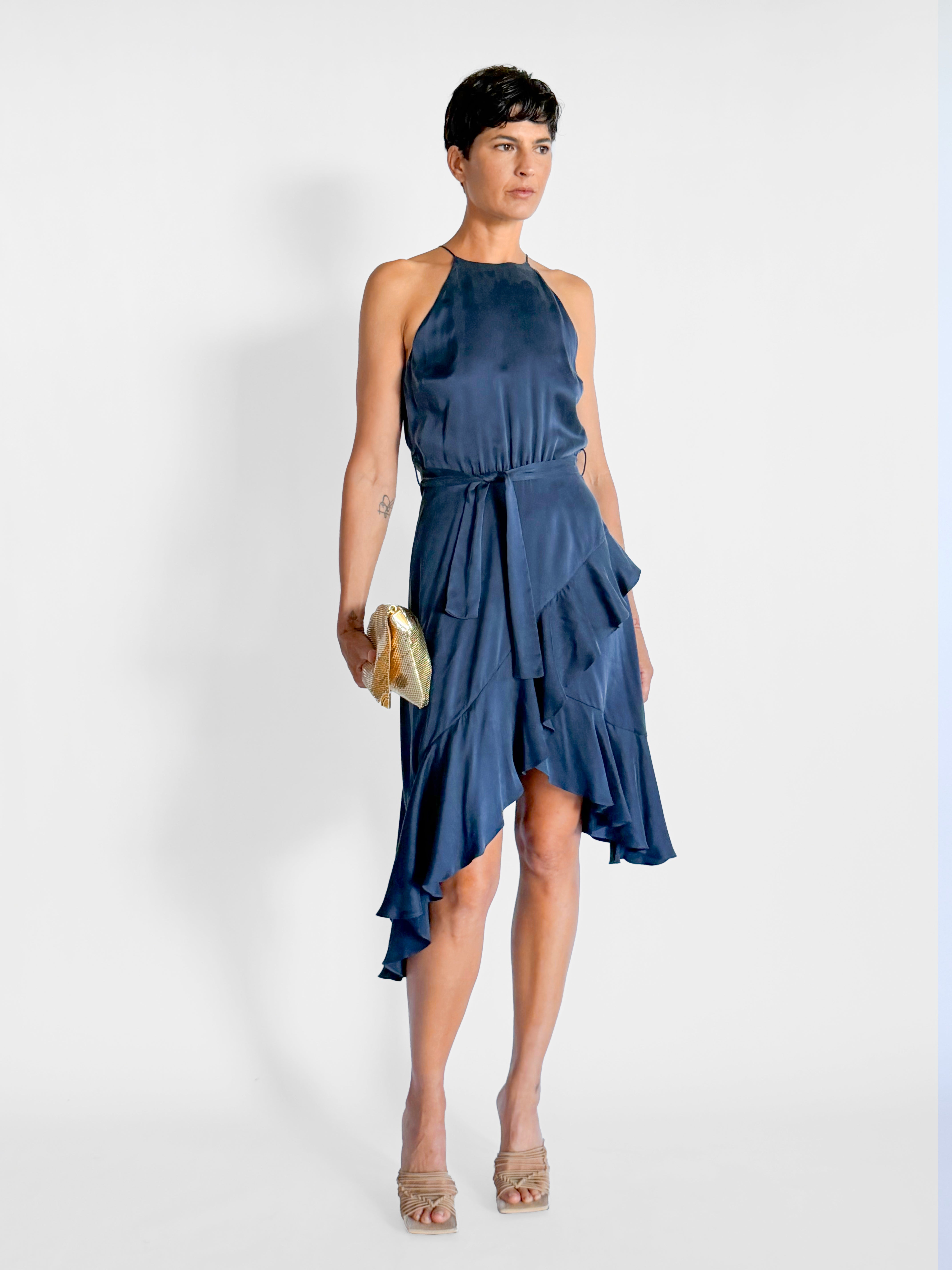 Silk Ruffle Midi Dress
